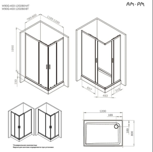 Купить «Душевой уголок Am.Pm Gem W90G-403-120280-BT, 120 x 80 см, стекло прозрачное, профиль черный» недорого легко, фото, видео, доставка. Для заказа просто позвоните по телефону