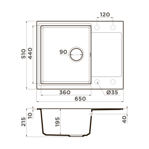 Глубина мойки: 510