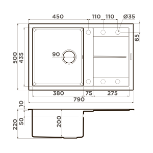 Ширина мойки: 790