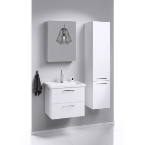 Подвесная тумба Aqwella в белом глянцевом цвете с двумя ящиками с умывальником 60см