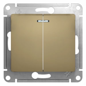 Купить «SE Glossa Титан Выключатель 2-клавишный с подсветкой, сх.5а, 10АХ» недорого легко, фото, видео, доставка. Для заказа просто позвоните по телефону
