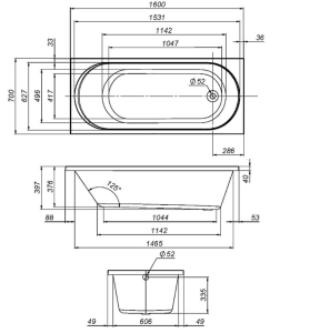 Длина акриловой ванны: 160