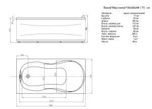 Ванна изготовлена из качественного акрила толщиной 4 мм, что гарантирует долговечность и устойчивость к износу. Производитель предоставляет надежную гарантию на 20 лет, подтверждая высокое качество изделия. В комплект входит каркас и слив-перелив, что упрощает процесс монтажа.