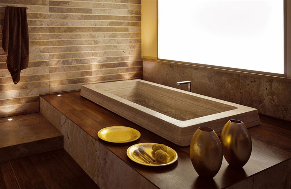 Такой роскошный дизайн может позволить себе обладатель большой ванной комнаты как минимум в особняке.