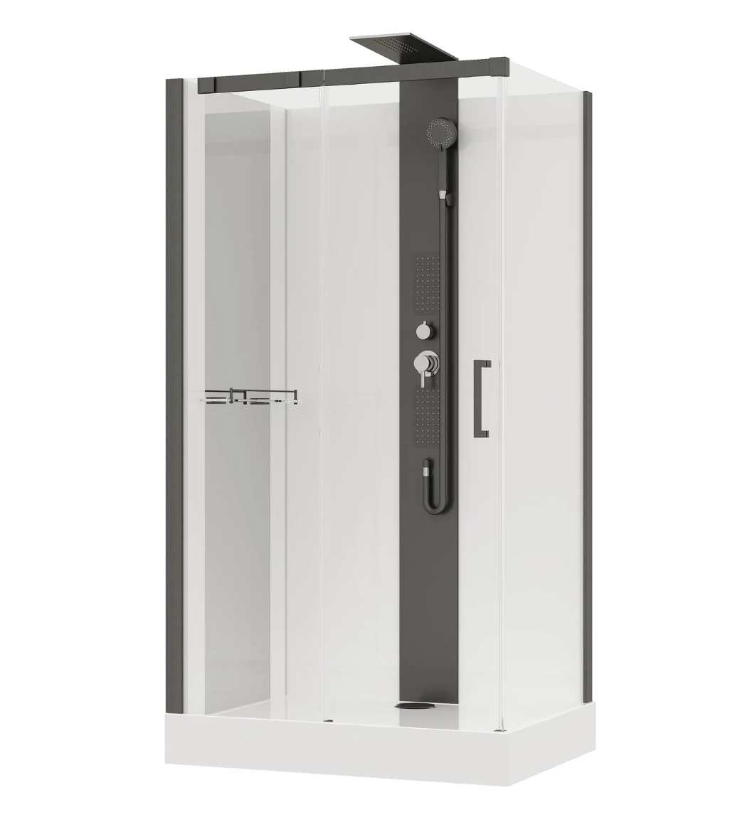 Душевая кабина Black & White G8708GM — гармоничное слияние современного стиля и продуманной функциональности, где профиль цвета оружейная сталь и прозрачное стекло создают атмосферу лёгкости и визуальной свободы, а встроенное зеркало и открытый верх добавляют удобства и современного акцента.