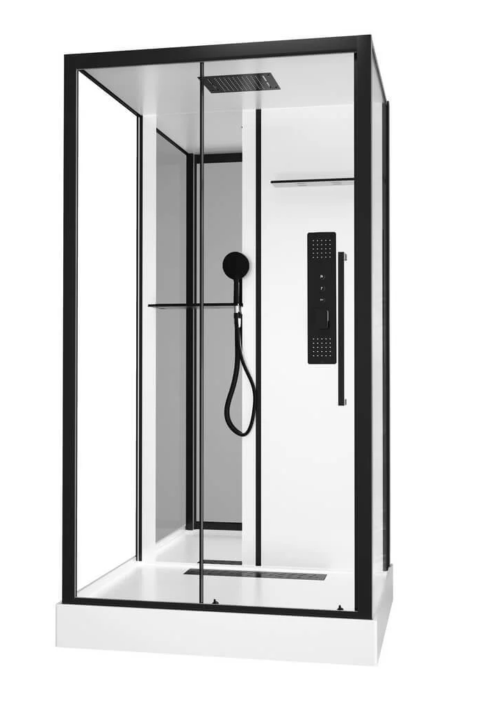 Душевая кабина Black & White G8028 — просторная и выразительная модель для ванной комнаты, в которой каждая деталь продумана: от чёрного матового профиля до прозрачного стекла большого формата, создающего ощущение лёгкости и открытости.