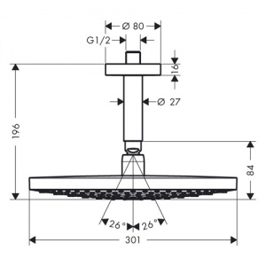Верхний душ Raindance Select 300 2jet с потолочным держателем, белый/хром.