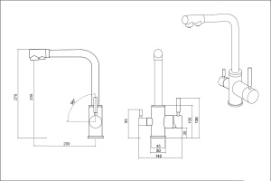 Кухонный смеситель ЕС-3003 Кухонный смеситель с возможностью подключения фильтра для очистки воды. Фильтрованная вода подается отдельной ручкой через отдельную трубку и не смешивается с водопроводной водой. Однорычажное управление поможет легко регулировать температуру и напор подачи воды. Соответствует стандартам DIN DVGW. Комплектация: набор креплений, гибкая подводка, инструкция и гарантийный талон. Основные характеристики: Высота смесителя: 270 мм С подключением фильтра для воды Изоляторы против нагрева ручек Керамический картридж Поворотный излив Материал - латунь Установочное отверстие под смеситель 35 мм Гарантия на смеситель 5 лет (гарантия на покрытие 1 год) Гарантия не распространяется на механические повреждения.