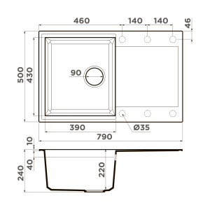 Ширина мойки: 790