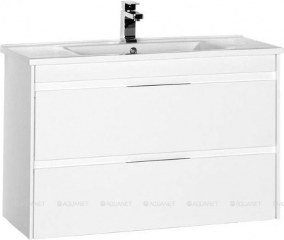 Тумба в ванную комнат Акванет Тулон подарит дополнительное пространство для хранения банных принадлежностей, зона хранения представлена двумя глубокими выдвижным ящиками. Аккуратный минимализм, торжество светлого тона и прямоугольника. Геометрически четкие формы и отсутствие декора — чистота изящества воспевает красоту, подчиненную функциональности. Раковина в этой коллекции сделана из керамики. При этом борта ее не широкие, как их чаще всего выполняют у керамических сантехнических изделий, а узкие, что выглядит утонченно и изящно. Белый цвет тумбы работает на увеличение пространства, визуально облегчает конструкцию, делает ее почти прозрачной.