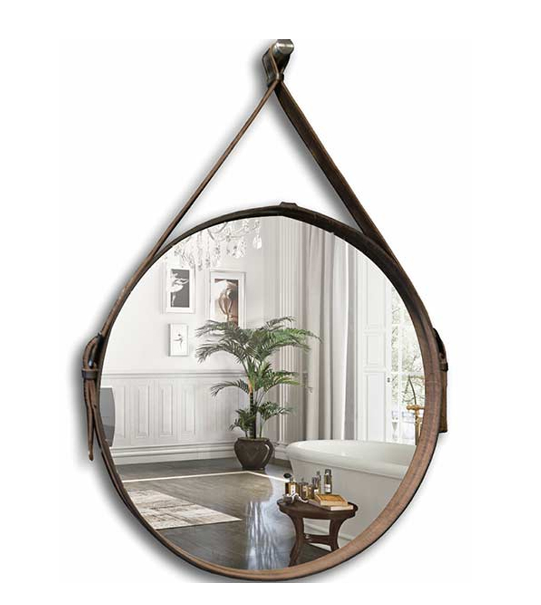 Зеркало с LED-подсветкой изготовлено из влагостойкого зеркального полотна высшего качества. Рама зеркала выполнена из натуральной кожи коричневого цвета.