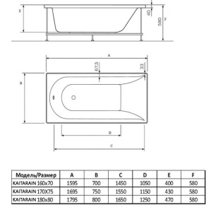 Длина акриловой ванны: 170